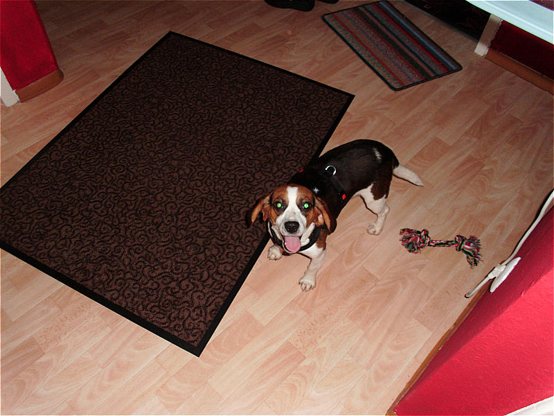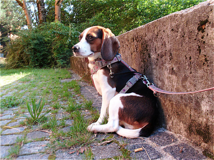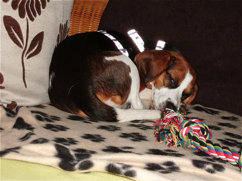 In der Zwischenzeit hatte ich mit Aruscha (auch ein Angsthund) Hundeerfahrung sammeln können, und durch meine Eltern, die inzwischen 2 Ex-Laboris beherbergen, konnte ich mir einen Eindruck darüber verschaffen, was mit einem Labori auf mich zukommen könnte. Also nahm ich zur Laborbeaglehilfe Kontakt auf, schilderte meine Situation, was ich einem Labori bieten kann und es sprach nichts dagegen. Im August 2011 zog dann also Mini-Sadie bei mir ein und das Abenteuer Laborbeagle begann:-)